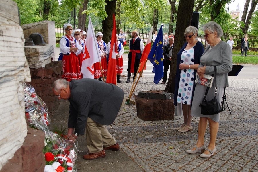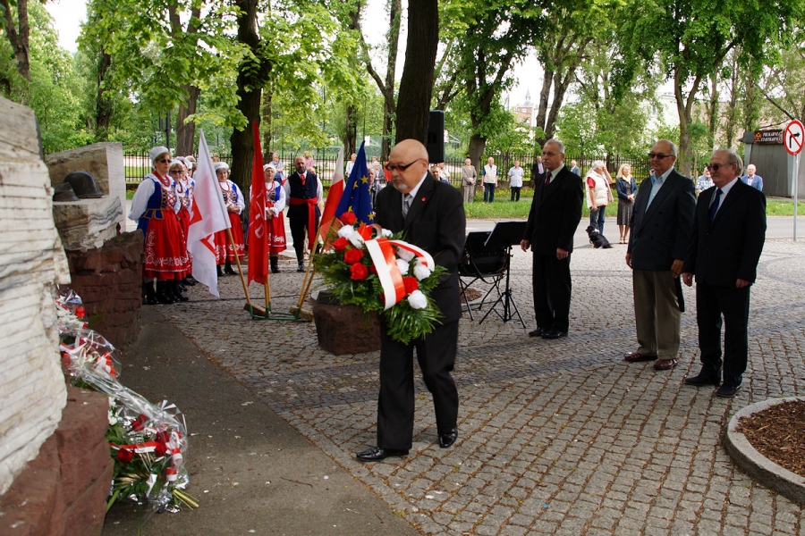 Obchody 1 Maja zorganizowane przez SLD w Inowrocławiu pod Pomnikiem Obrońców Inowrocławia. Fot. Mieczysław Kamiński